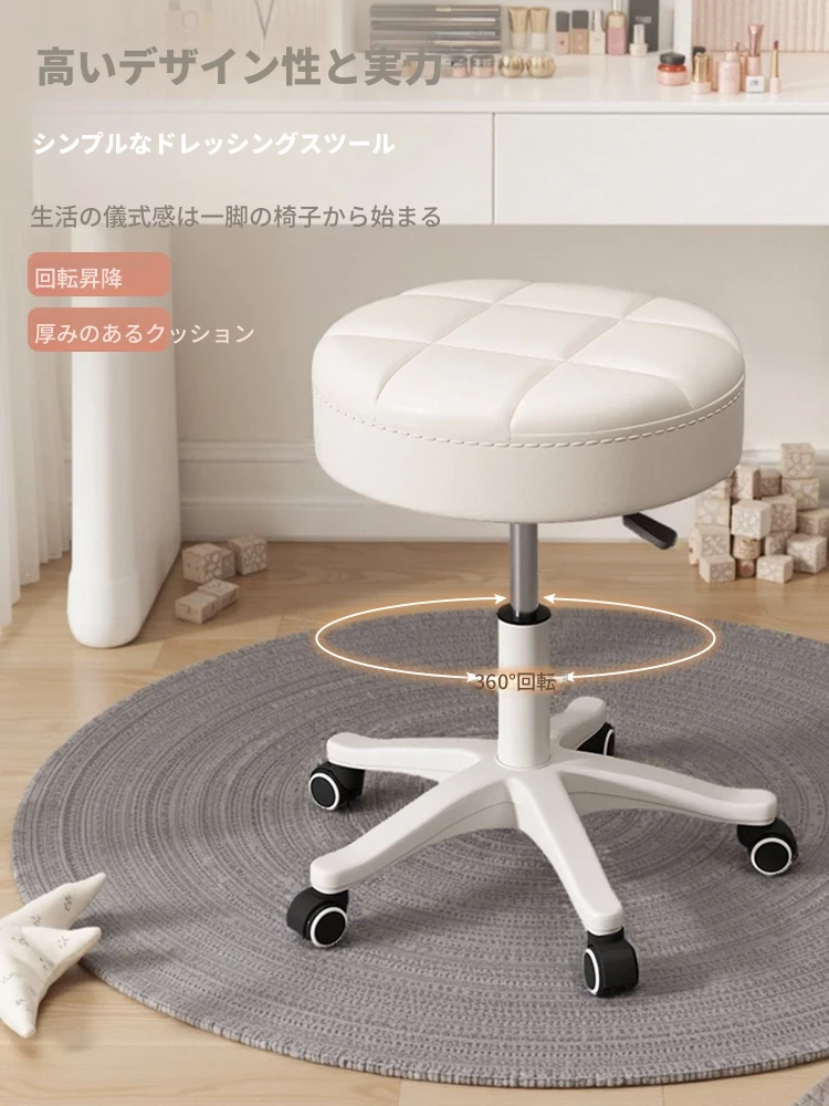 インフルエンサーおすすめ!女子向け化粧台用のスタイリッシュな化粧椅子。寝室にぴったりの軽やかなデザインで、リラックス空間を演出。おしゃれなラウンドスツールで、毎日のメイクを楽しく!