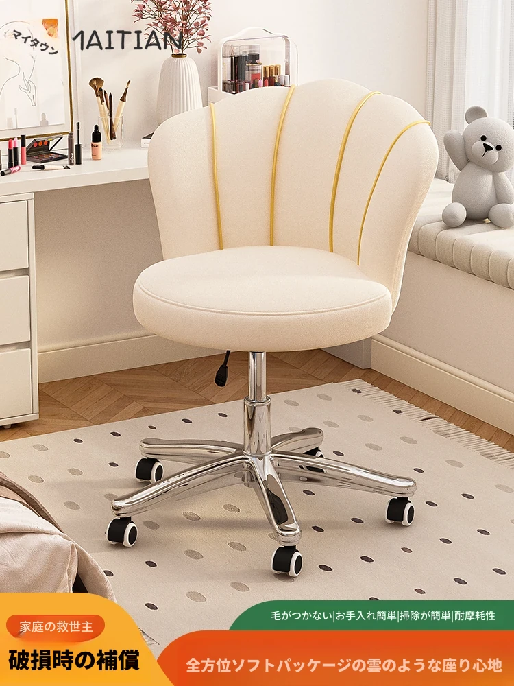 軽奢華のメイクアップチェア|自宅用・寝室に最適なドレッシングテーブル用チェア|シンプルでモダンなプリンセスチェア|回転式フラワーペタルチェアで、美しさを引き立てる特別な時間をお楽しみください!