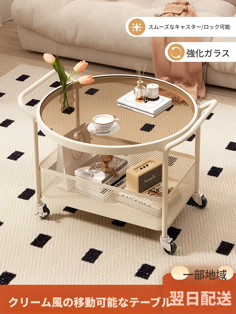 クリーム風ソファサイドの家庭用移動式ベッドサイドキャビネット、収納ラック、寝室やバルコニーにぴったりのミニテーブル、小型住宅向けのかわいいコーヒーテーブルです。スペースを有効活用して、おしゃれな空間を演出しましょう!