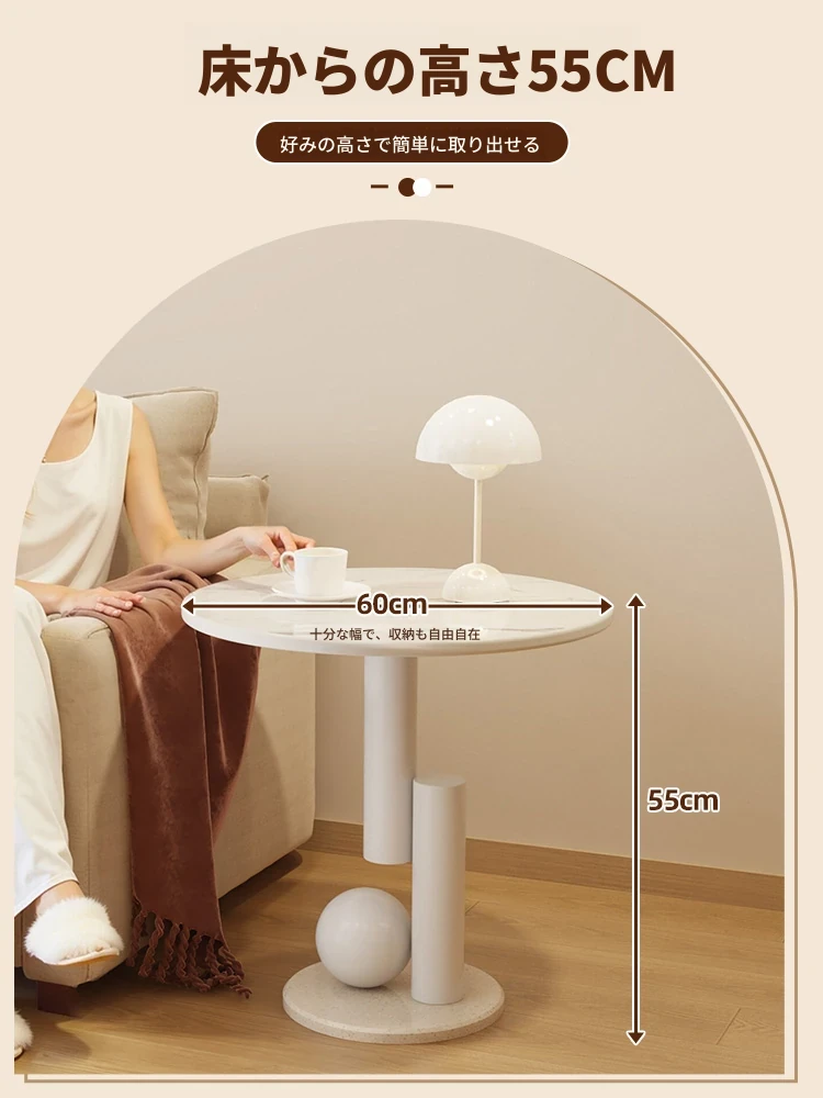 クリーム風の岩板サイドテーブル - 創造的でミニマルなデザイン、リビングルームにぴったりの小さなティーテーブル。ラウンド型で軽やかな高級感を演出、ベッドサイドにも最適!