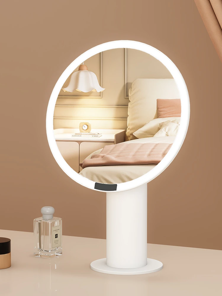 LEDライト付きデスクトップ化粧鏡 - スマート機能でおしゃれなメイクアップ体験を!ホームユース、寮生活にもぴったりなインスタ映えするミラー。あなたのビューティータイムを格上げします!
