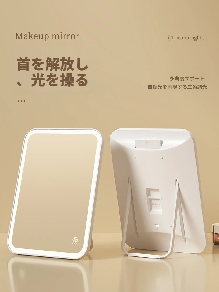 学生寮や家庭にぴったり!LEDライト付きデスクトップ化粧鏡 - 手持ち可能なスマートメイクアップミラーで、完璧なメイクを実現!明るさ調整も簡単、どんなシーンでも美しさを引き立てます。