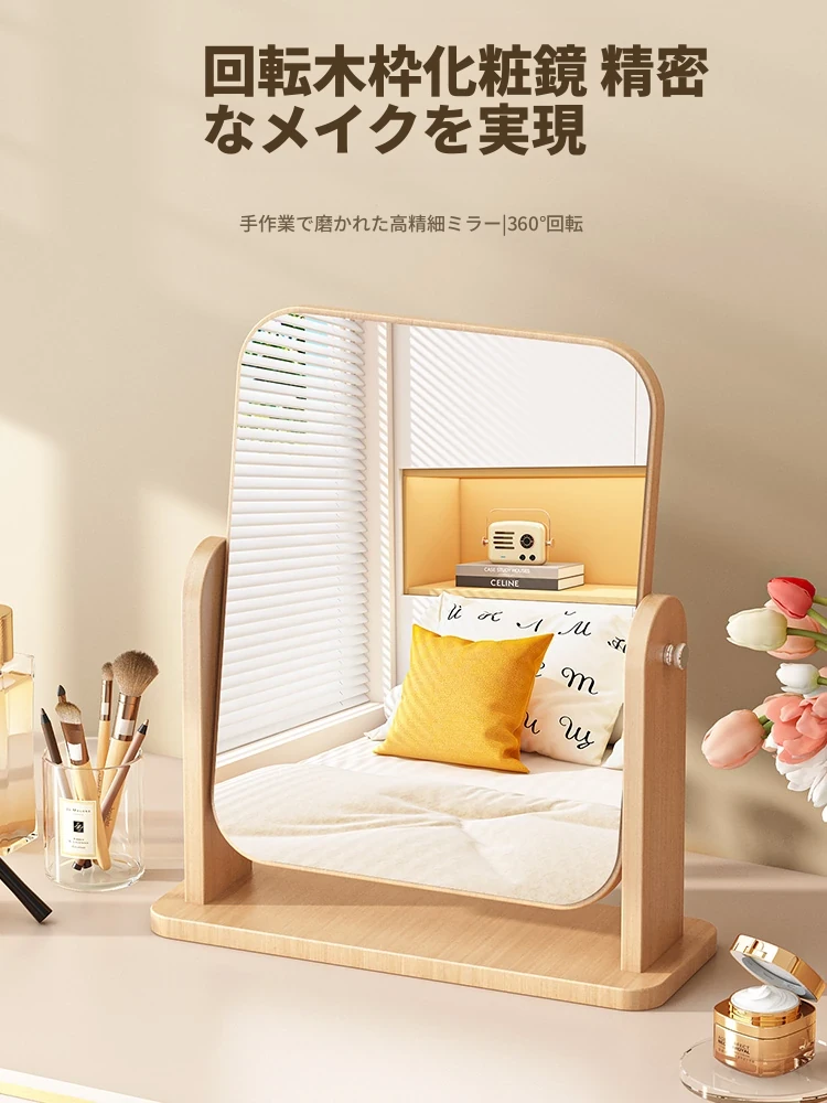 インスタ風 大型木目調メイクミラー 自宅用デスクトップスタイル 魅力的な女性用ドレッシングテーブルにぴったり!シンプルで洗練されたデザインの化粧鏡で、毎日のビューティータイムを特別に演出します。