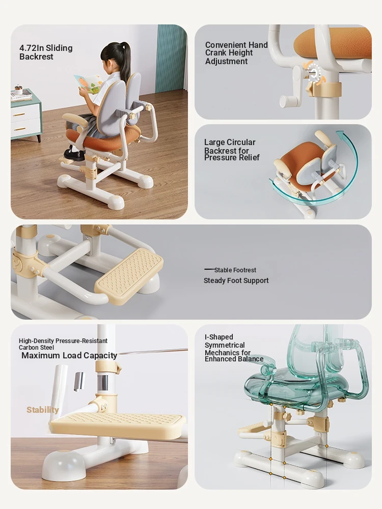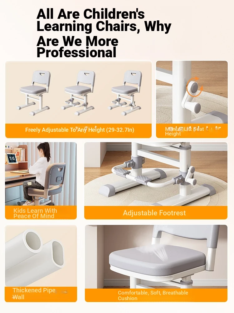 Adjustable Study Chair for Kids - Ergonomic Design for Correct Posture, Perfect for Elementary Students, Ideal Home Writing and Homework Seat