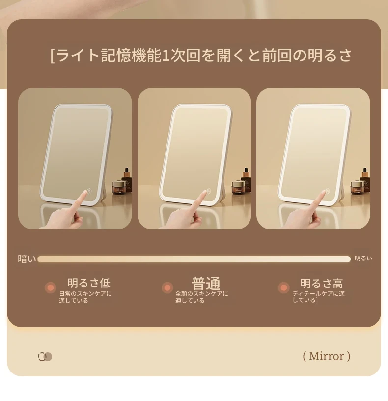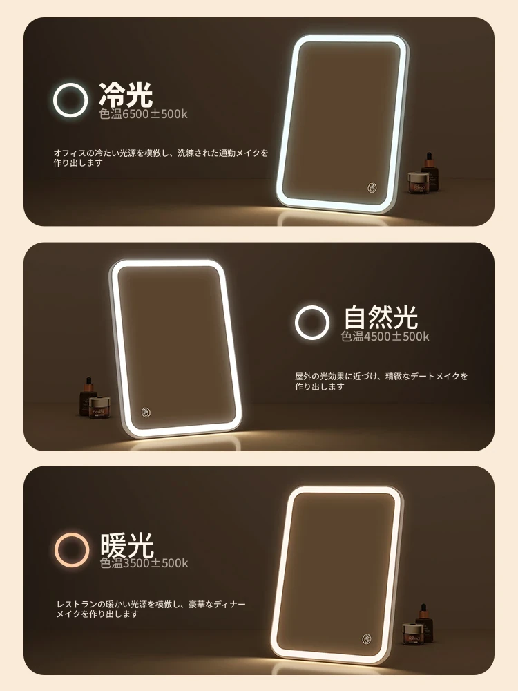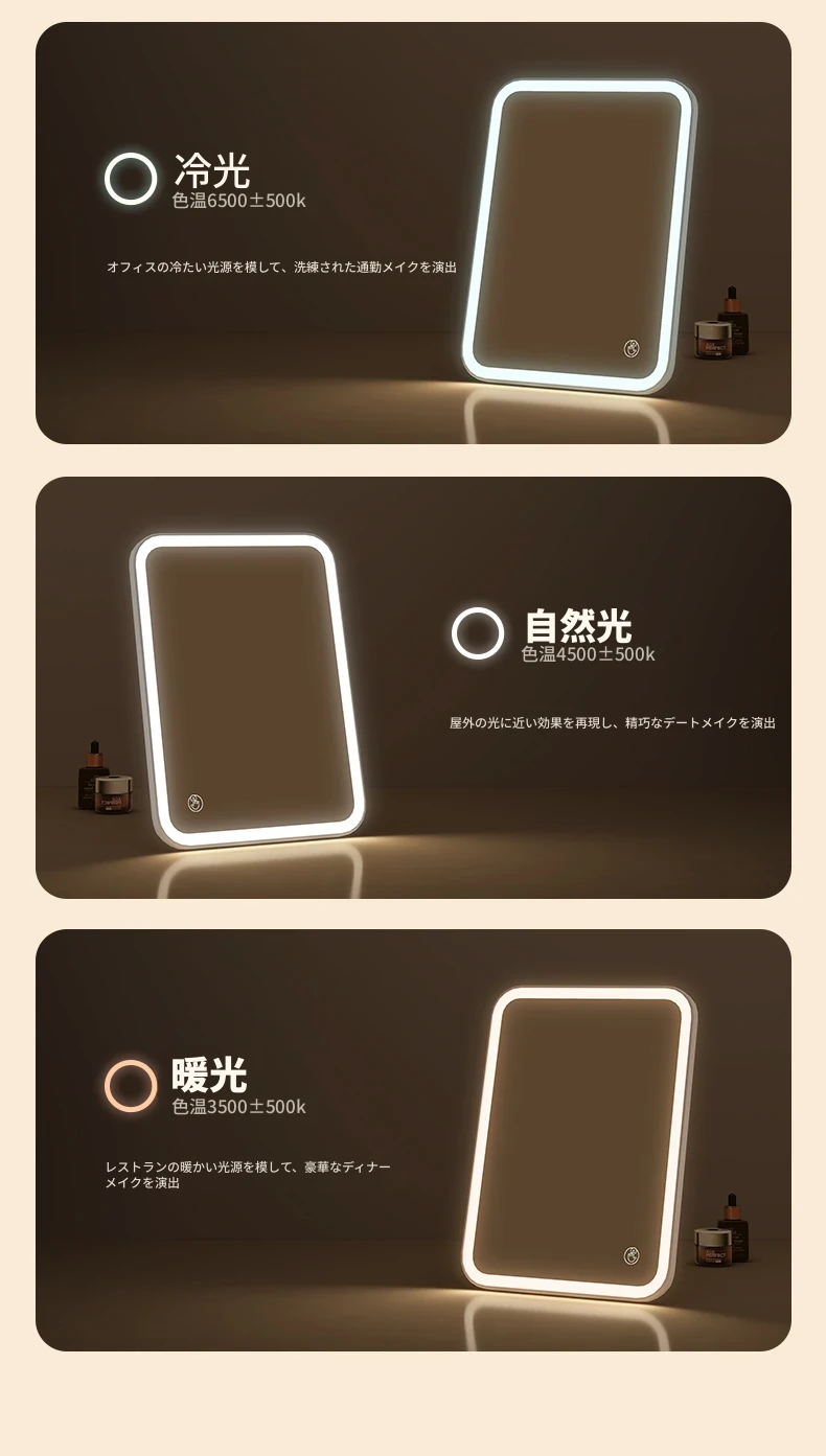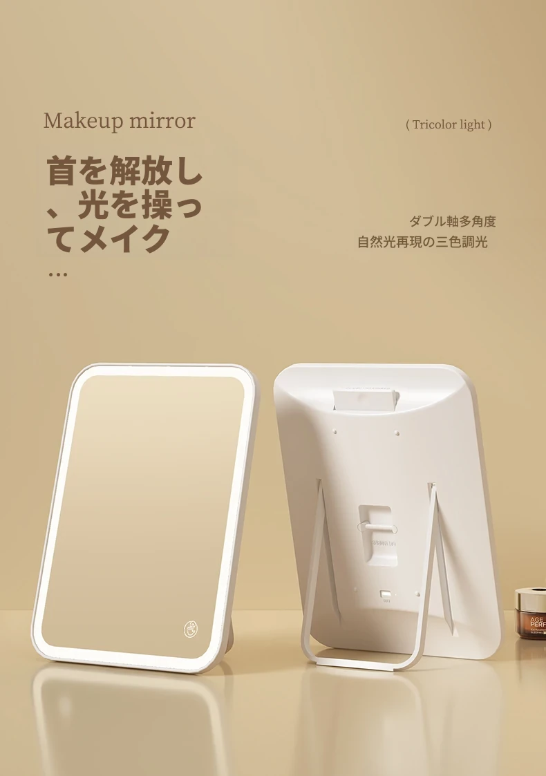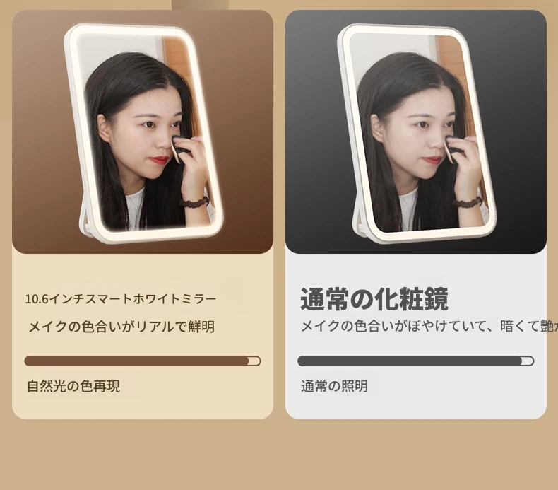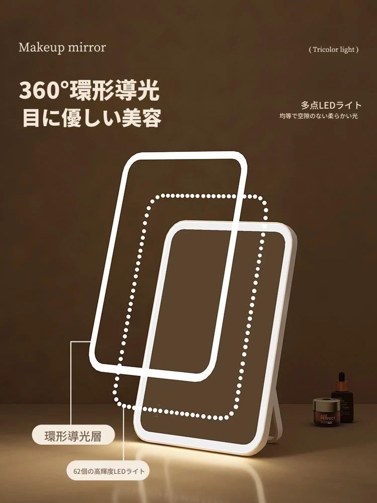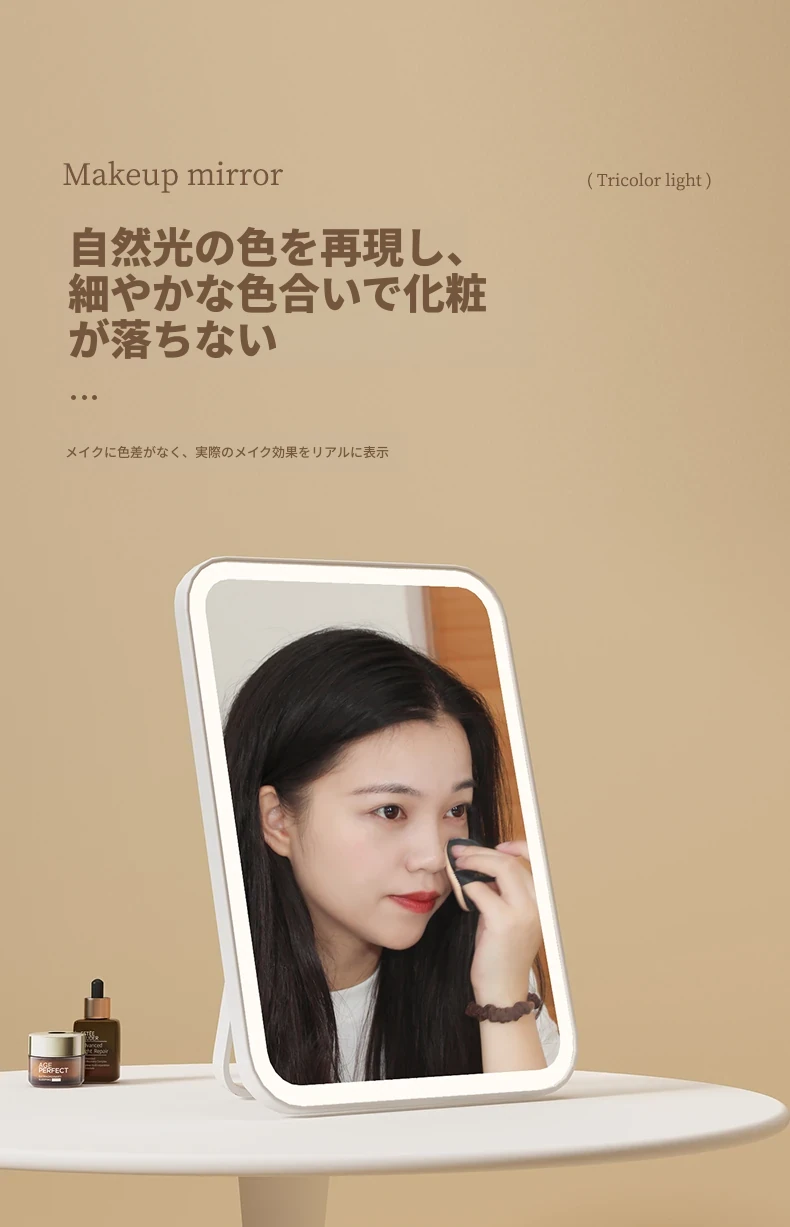 2025年新作!LEDライト付き携帯折りたたみ化粧鏡 - 学生寮や外出先でも便利なコンパクトデザイン!メイクアップが楽しくなるデスクトップミラー。