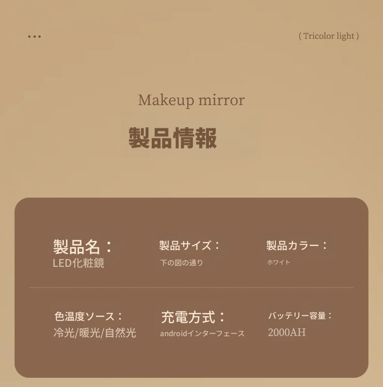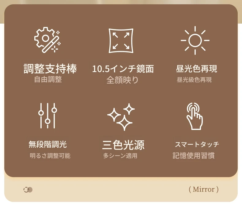 【メイン画像商品】折りたたみ四角大サイズ-三色ホワイト【9.6インチミラー/2000HA】
