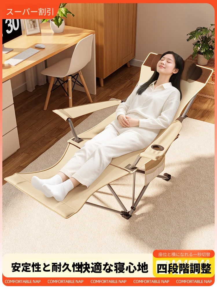 折りたたみ式リクライニングチェア - 自宅やオフィスでの快適な昼寝に最適!バルコニーやリビングでも使える、リラックスできる2WAYチェア。座っても寝ても心地よい、あなたのリラックスタイムをサポートします!