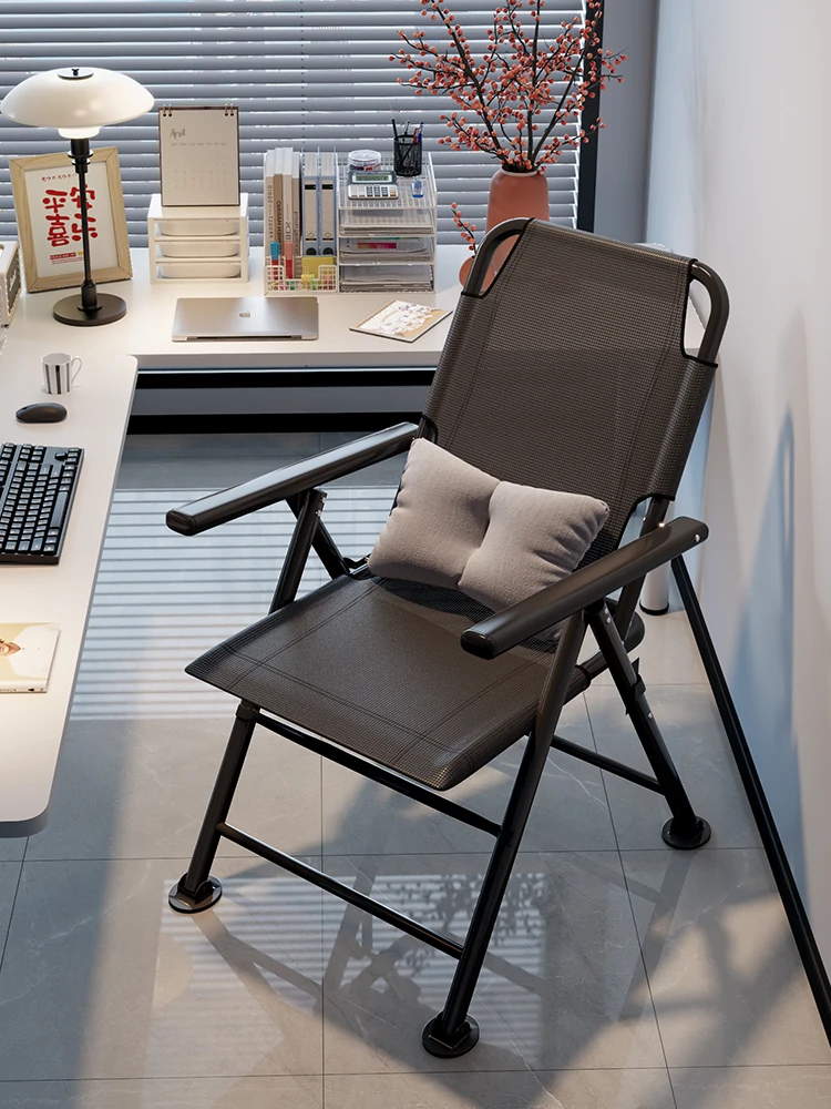 厚めの背もたれ付き折りたたみ椅子 - レトロな電鍍仕上げ、天壇スタイル!オフィスや会議、コンピュータ作業にも最適なデザイン。寮での勉強にもぴったりの快適な椅子です!