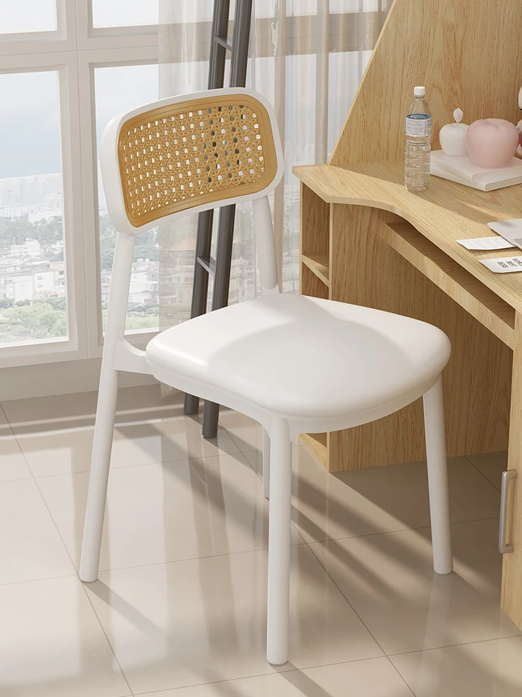 長時間座っても疲れにくい!快適なデスクチェア - 家庭用・大学生向け・勉強や仕事に最適な背もたれ付き。メイク用スツールとしても使える多機能デザイン!