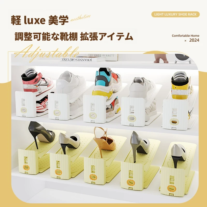 調整可能な二段式靴収納、 dormitory用靴棚、仕切り付き二層一体型シューラック、靴の収納革命!スペースを有効活用し、快適なお部屋を実現!