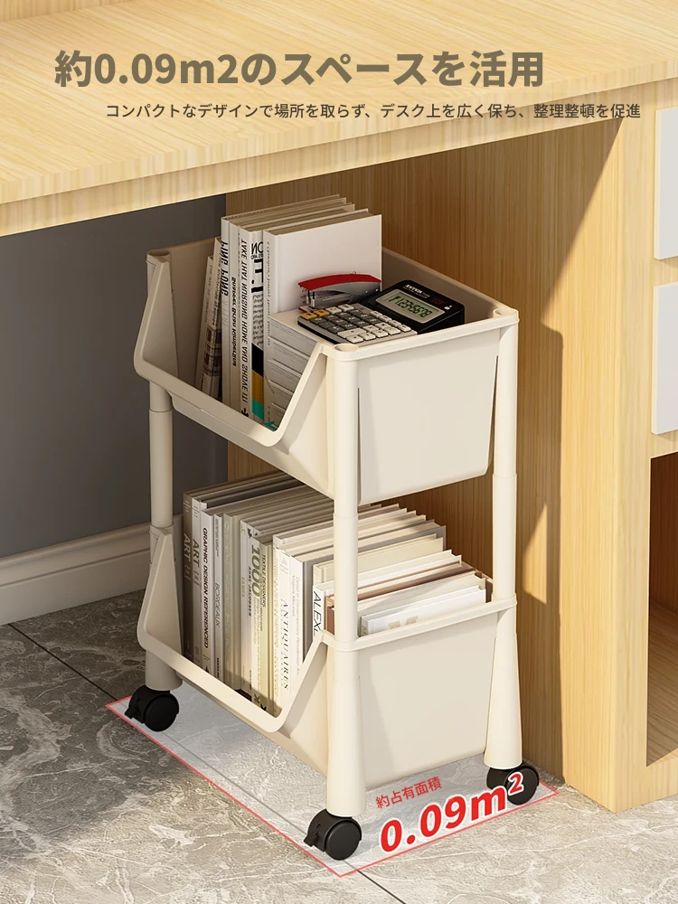 移動式デスク下ラック!オフィスや学生寮に最適なキャスター付き収納カート。デスク周りをスッキリ整理!書籍や小物をおしゃれに収納できる便利なアイテムです。
