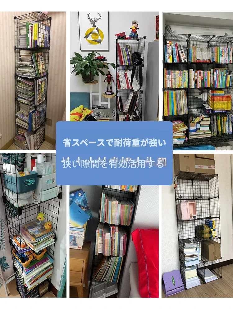 簡単設置!隙間にもぴったりフィットする、スタイリッシュなアイアンメッシュ製の書架。省スペースで多層収納可能なデザイン、学生寮や小さなお部屋に最適なコーナーラック!