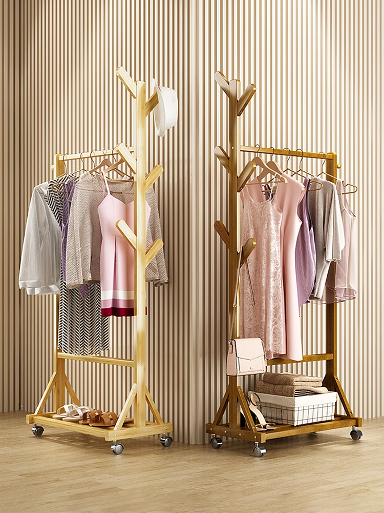 モダンでシンプルなバンブー製のスタンド式衣類ハンガー - 寝室にぴったりの収納ソリューション!オシャレな欧風デザインで、衣服を美しくディスプレイ。お家のインテリアに最適なアイテムです!
