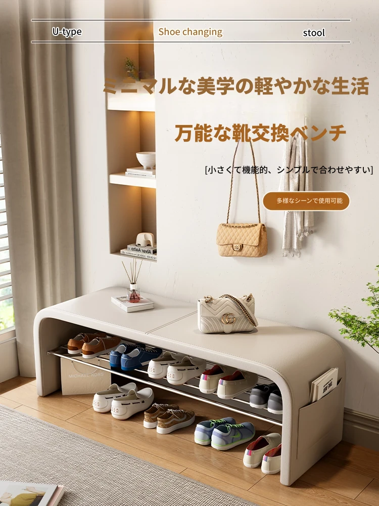 玄関用シューズベンチ|おしゃれな収納付きスツール|軽やかな高級感|寝室やベッドサイドに最適なロングベンチ|靴を履く時の快適なひとときを提供します!